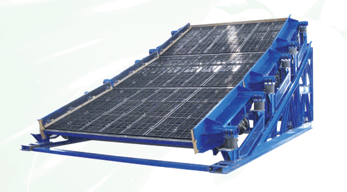 由于受承載極限轉(zhuǎn)速的限制及篩框結(jié)構(gòu)強度的影響,目前國內(nèi)的傳統(tǒng)振動篩不易做到高頻化、大型化。等厚分段篩分為多段篩分單元,各篩分單元分別獨立振動,使得各篩分單元均可實現(xiàn)較大的振動強度,大振動強度可大幅度提高振動篩的生產(chǎn)率和篩分效率,同時使篩子實現(xiàn)了大型化。各篩分單元的獨立振動,對機架的振動得以分散,可降低整機的振動強度,由于等厚分段篩在設(shè)計原理上所具有的優(yōu)點,使得等厚分段篩具有使用壽命長,噪聲低,對廠房影響小的特點,是一種環(huán)保型篩分設(shè)備。
