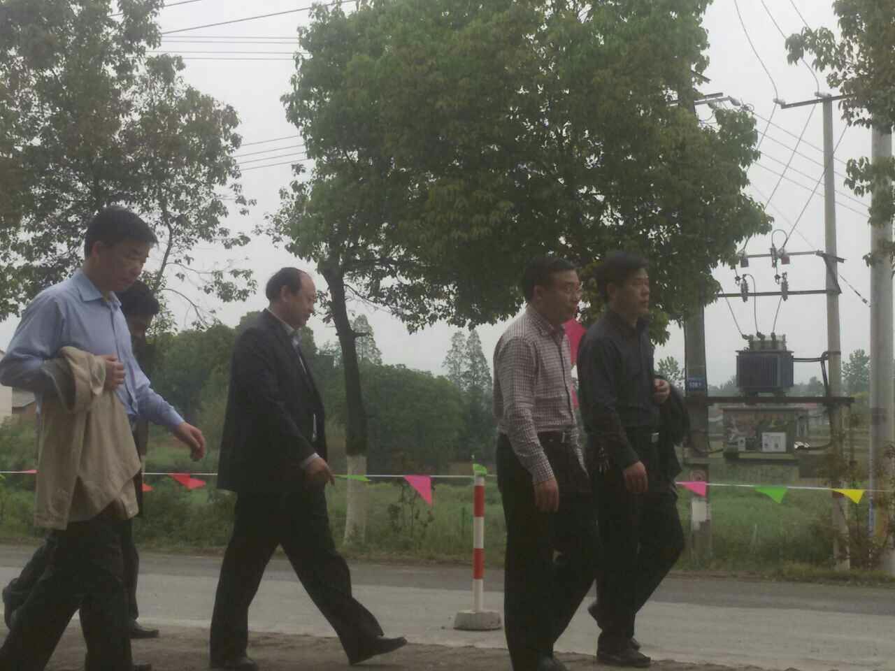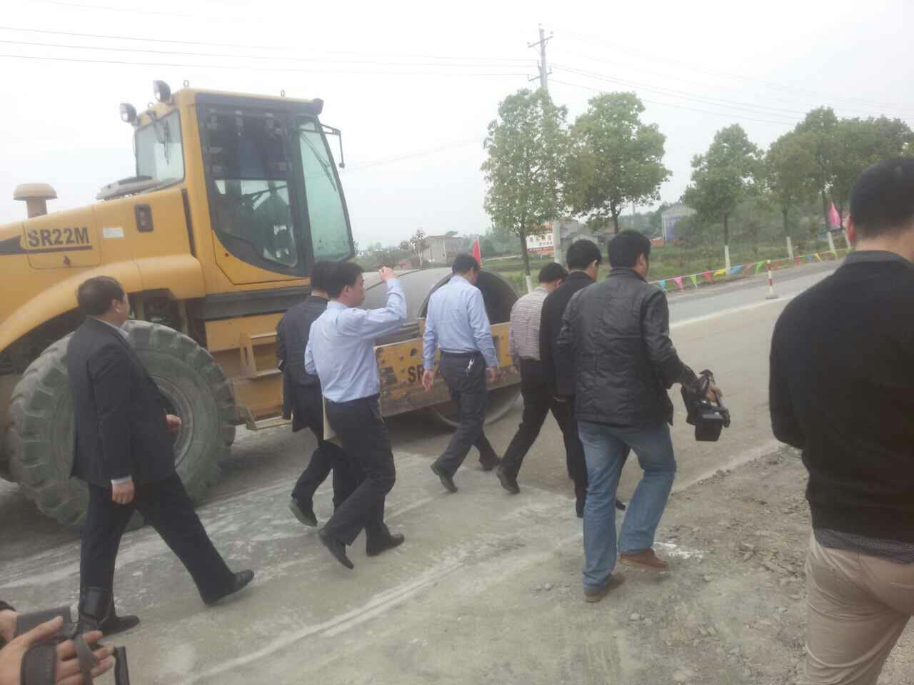 圖為荊門市委書記,湖北省公路局局長,京山縣公路局局長現(xiàn)場觀摩指導(dǎo)工作。