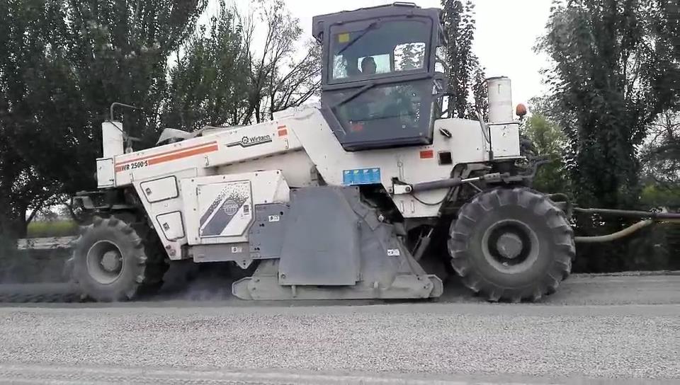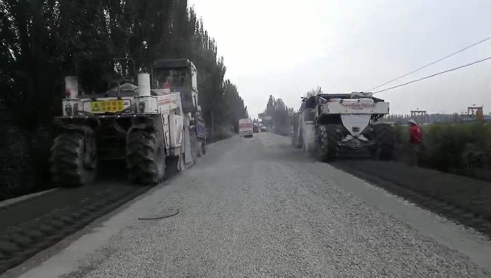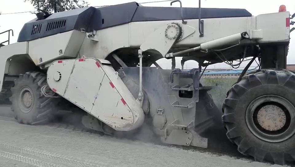 2017年8月,我公司一臺(tái)RZ2300B在山西大同與維特根WR2500同場(chǎng)竟技。該路段為G208國(guó)道大同北段,參與施工的RZ2300B冷再生機(jī)是我公司生產(chǎn)的經(jīng)濟(jì)型機(jī)械傳動(dòng)冷再生機(jī),功率為600馬力,雙橋驅(qū)動(dòng)。該型冷再生機(jī)雖然為經(jīng)濟(jì)型機(jī)械傳動(dòng)冷再生機(jī),與四輪升降機(jī)械傳動(dòng)冷再生機(jī)相比,實(shí)際工作效率卻一點(diǎn)也不差。該路段施工的初始500米,其強(qiáng)度近似水泥路面,如果是一般的液壓傳動(dòng)冷再生機(jī)將會(huì)完全干不動(dòng),但我們的RZ2300B經(jīng)受住了考驗(yàn),一分鐘只能跑兩米,對(duì)于機(jī)械傳動(dòng)600馬力的冷再生機(jī),這真是艱苦的工程。后續(xù)的8公里路基強(qiáng)度是標(biāo)準(zhǔn)強(qiáng)度,機(jī)器的施工輕松了許多,后期加入的一臺(tái)維特根WR2500與我們的RZ2300B并肩施工,兩機(jī)器均能跑到7米左右。
