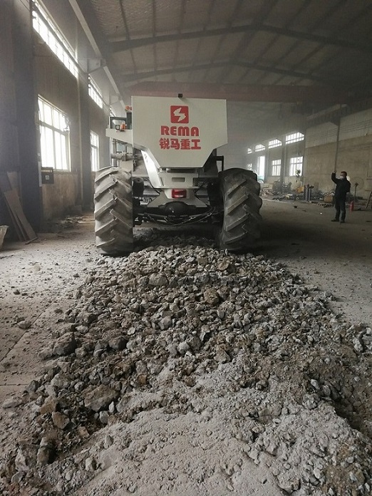 2017年歲末,我路拌公司研發(fā)的新產(chǎn)品RS600水泥路面破碎機(jī)樣機(jī)下線,并成功完成了水泥路面的破碎試驗,試驗的結(jié)果讓開發(fā)人員驚喜,實際工作效果超出預(yù)期,報廢的車間水泥路面強度雖然高,但破碎機(jī)工作穩(wěn)定,堅硬的水泥路面輕松破碎。